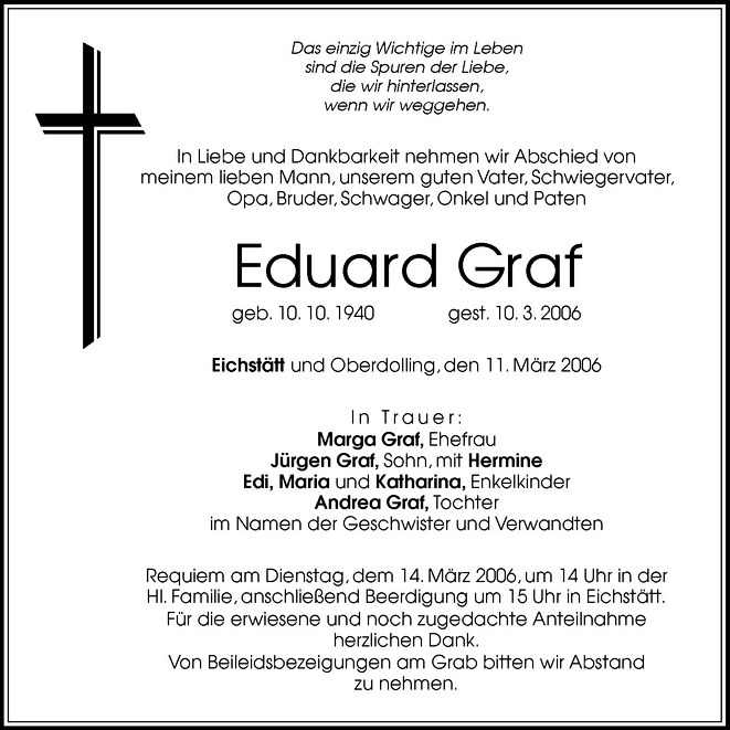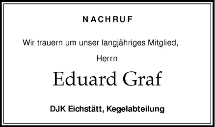 Am 10.03.2006 ist unser langjähriges Mitglied Eduard Graf verstoben.