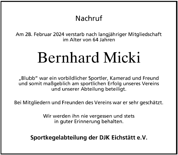Für uns alle unfassbar und viel zu früh, trauern wir über unseren am 28.02.2024
