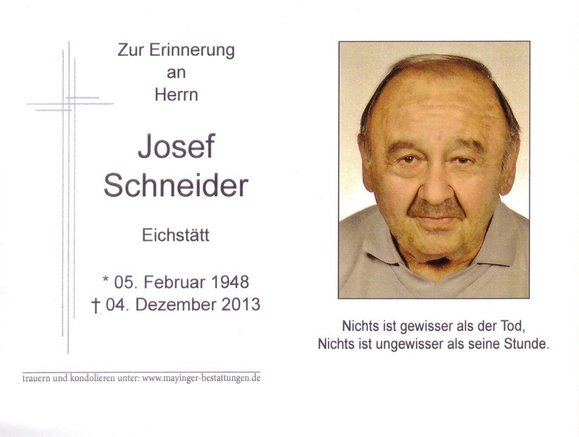 Am 04.12.2013 ist unser langjähriges Mitglied Josef (Mäck) Schneider verstorben.